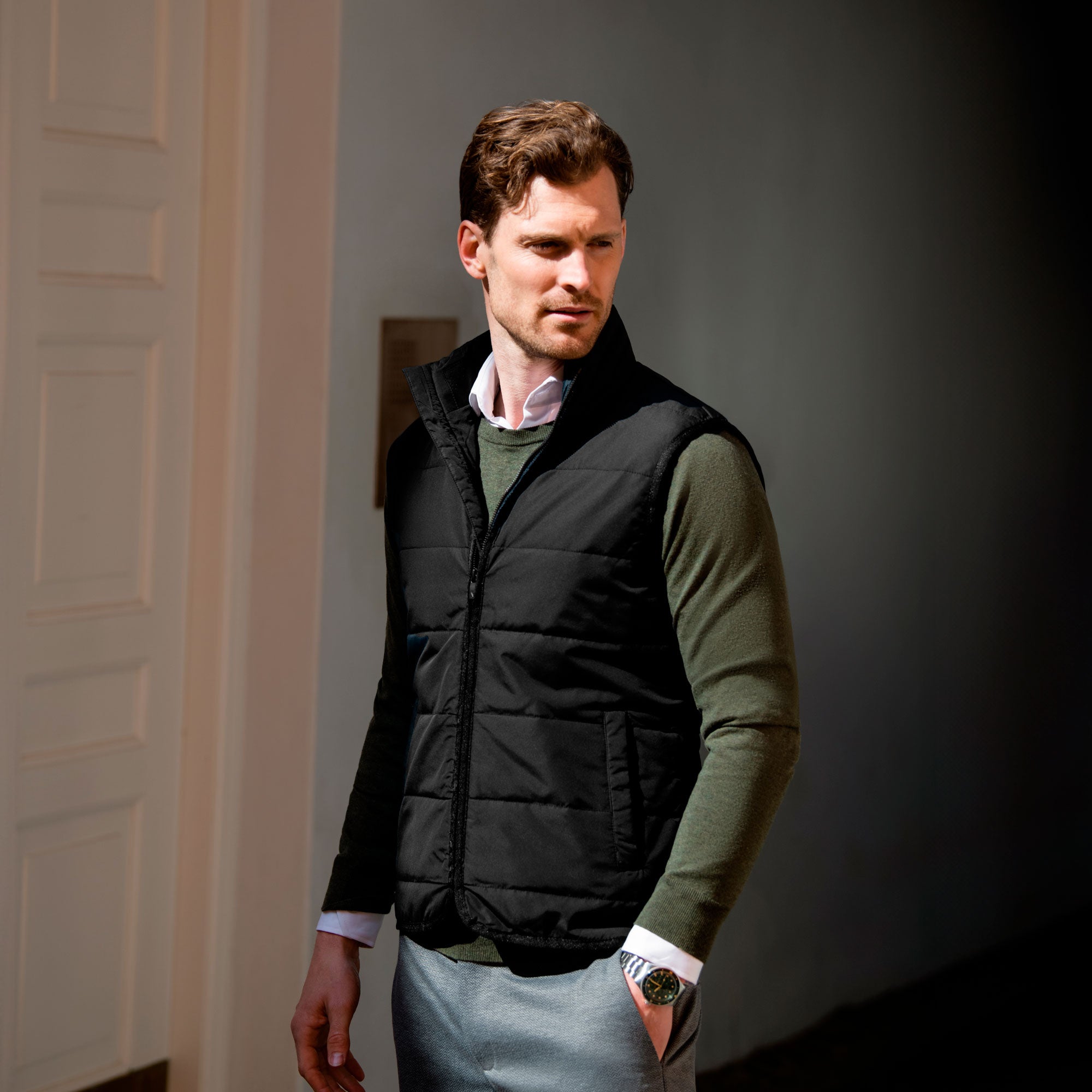 En fantastiskt skön bodywarmer för hela året, gjord i återvunna material. Hudson är elegant kviltad i horisontellt mönster och med klassiska designdetaljer samt fodrad med Sorona® Aura, vilket ger optimal värme samtidigt som produkten blir väldigt lätt att bära.